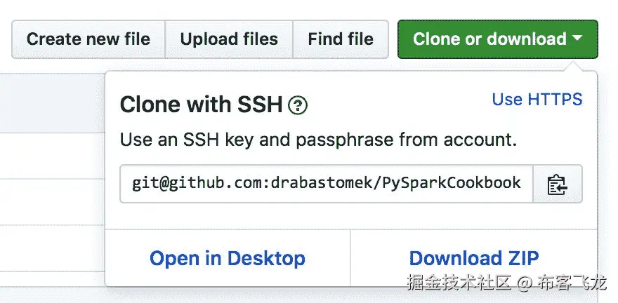git clone git@github.com:drabastomek/PySparkCookbook.git