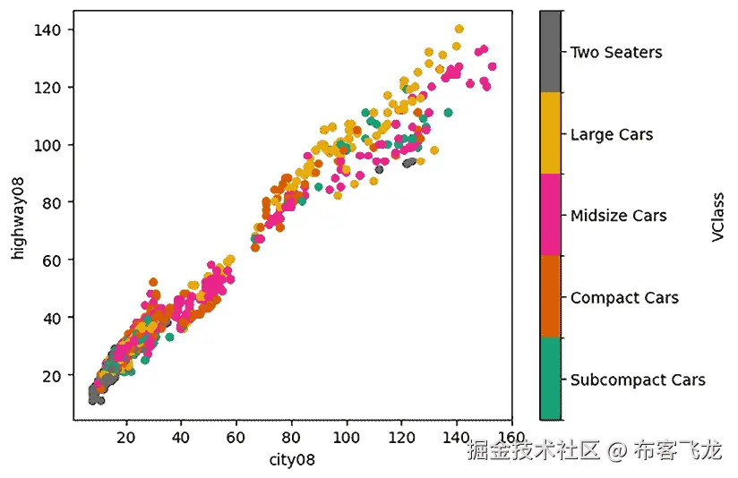 如您所见,城市里程倾向于略微向左倾斜,分布的峰值大约在 16 或 17 英里每加仑。高速公路里程的峰值更接近于 23 或 24,与理想的正态分布相比,在 17 或 18 英里每加仑处出现更多值。