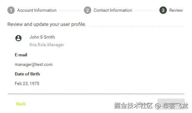 我们需要一个能够显示特定用户信息的组件。这些信息被呈现的自然位置是当用户导航到/user/profile时。您可以看到User配置文件的模拟。