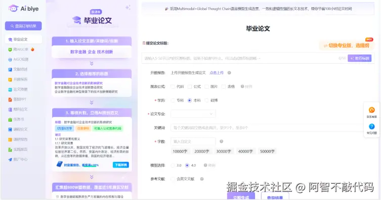 选好题、列好纲,最头疼的是写初稿—— 要整合文献、分析数据、画图表,耗时又耗力。aibiye 作为 “2025 学术 AI 新贵”,用 “AI 的效率 + 人类的原创性”,直接把 “写稿慢” 的问题解决了!