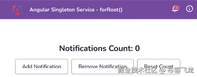 providedIn: 'root'为NotificationService来告诉 Angular 它只应在根模块中提供,并且在整个应用中只有一个实例。所以,让我们去notifications.service.ts文件,并在@Injectable装饰器参数中传递providedIn: 'root',如下所示:import { Injectable } from '@angular/core'; import { BehaviorSubject, Observable } from 'rxjs'; @Injectable(**{** **providedIn****:** **'root'** **}**) export class NotificationsService { ... }太好了!现在,即使你刷新并尝试添加或删除通知,你仍然会看到标题中的计数没有变化。“但是为什么这样,Ahsan?” 好吧,我很高兴你问了。这是因为我们仍然在