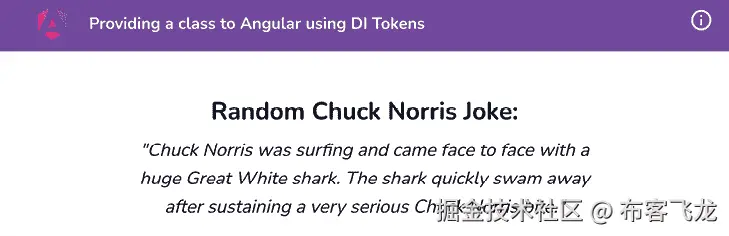 换句话说,当运行 App 组件的测试时,我们现在依赖于 Jokes 类,如果该类中发生任何变化,我们的测试将失败。由于 Angular 专注于 DI 和 服务,我们将使用 DI 令牌来使用 Jokes 类作为 Angular 服务。我们将使用 InjectionToken 方法创建 DI 令牌,然后使用 @Inject 装饰器来使我们能够在服务中使用该类。