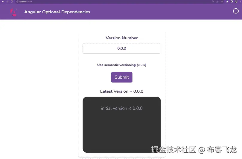 npm run serve ng-optional-dependencies这应该在新的浏览器标签页中打开应用程序,你应该会看到以下内容: