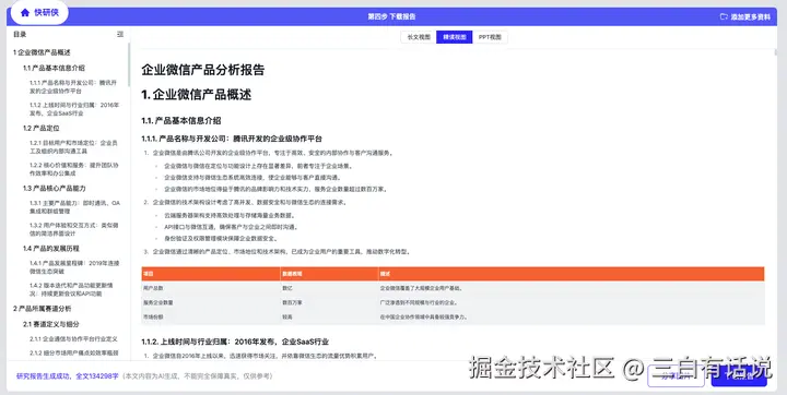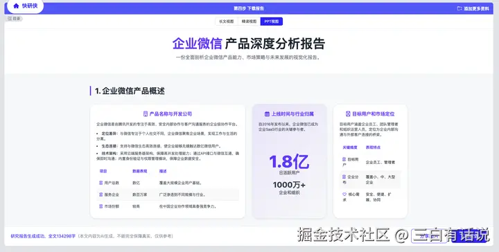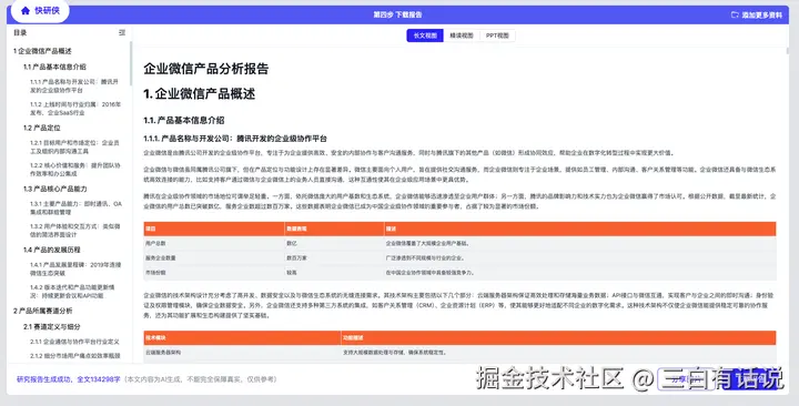 报告提供3种视图:长文视图、精读视图、PPT视图