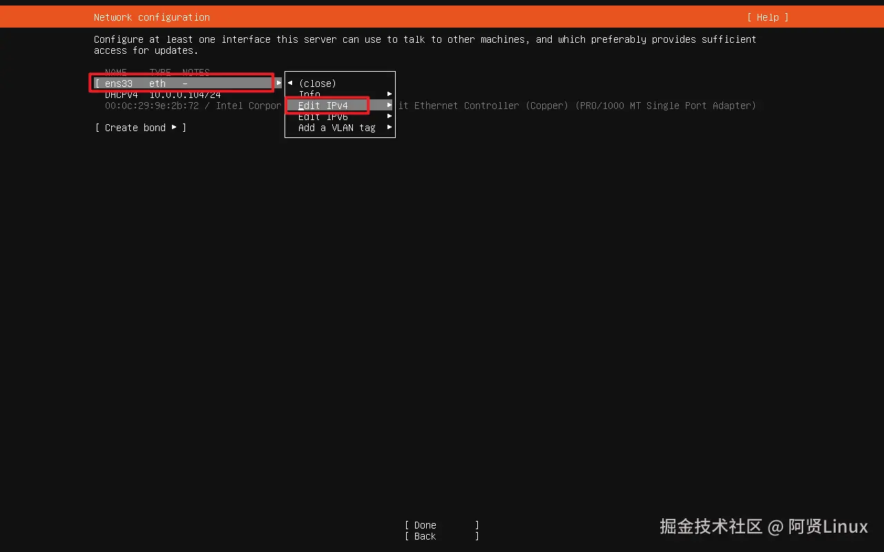 使用上键移动到ens33---回车选择Edit IPv4后