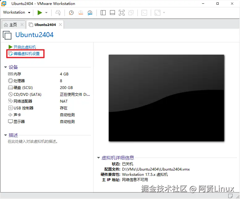如果手滑了没设置镜像或cpu内存等可以点击编辑虚拟机设置