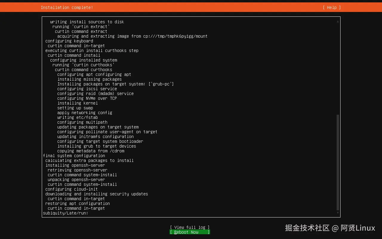 重启完成后安装成功,如果不显示输入用户名的地方回车一下就好