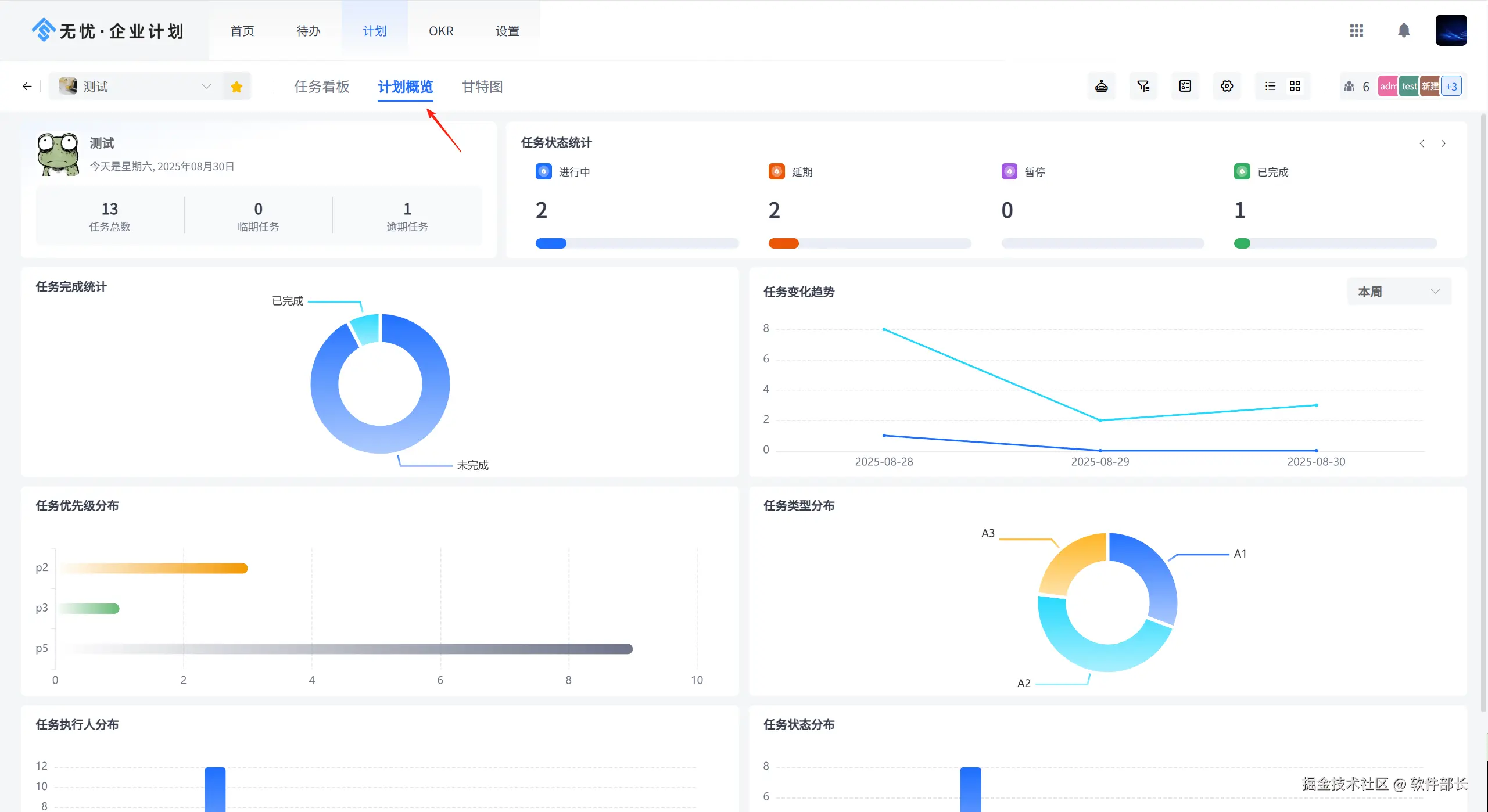 2、在项目计划中,优化了计划概览的展示内容,可以更加全面、直观的了解到项目执行情况: