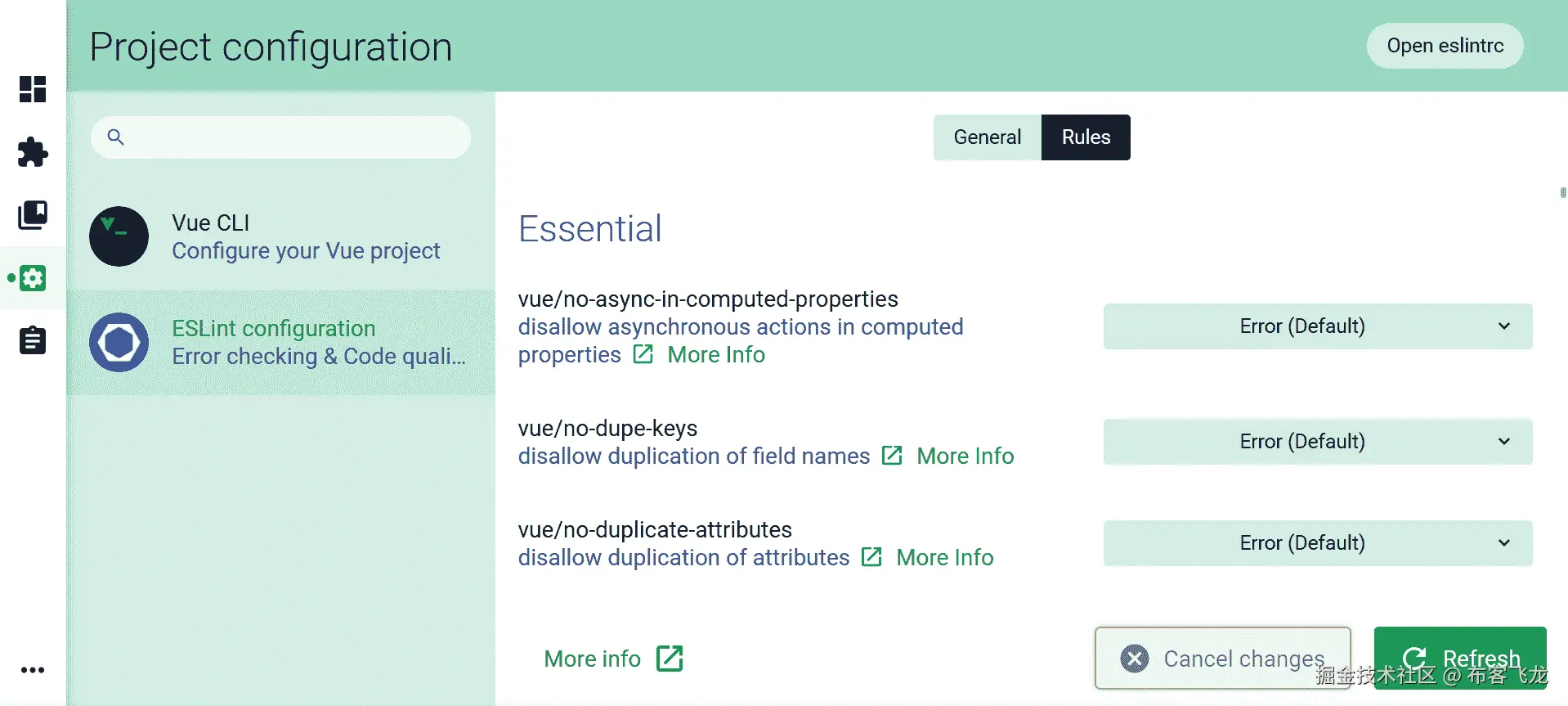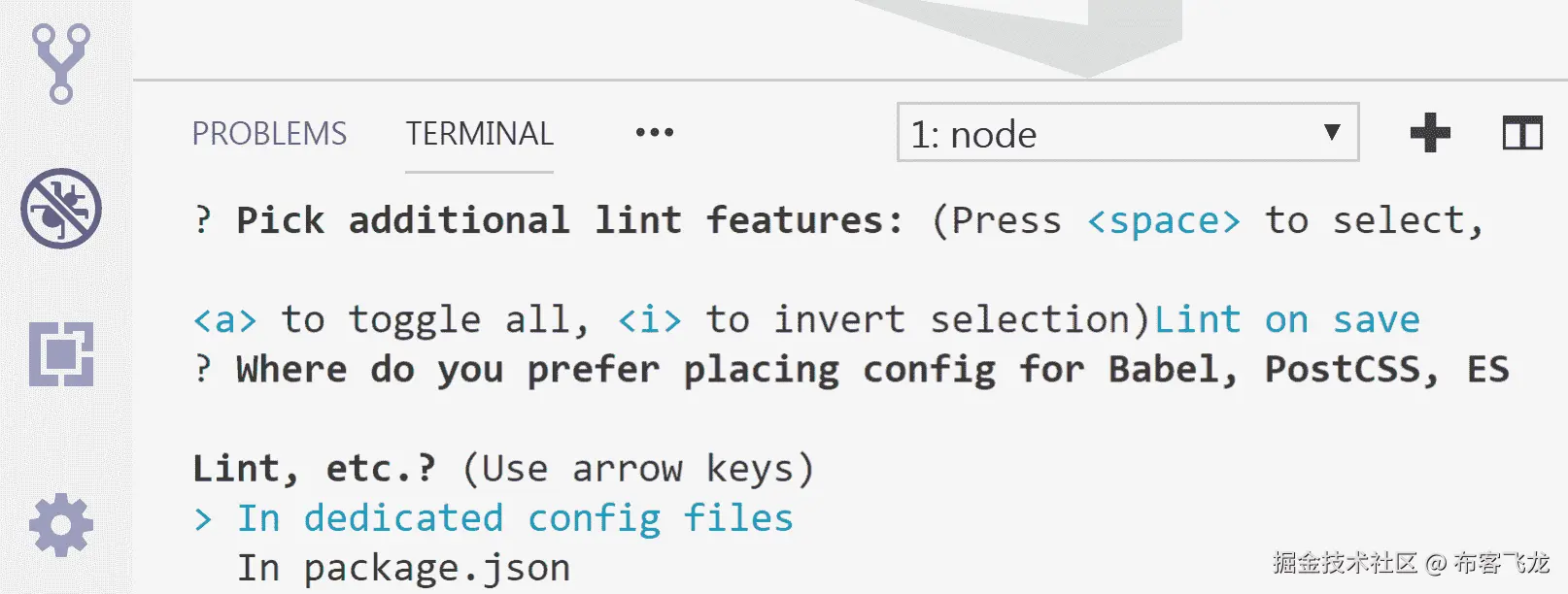 最后,我们将接受默认的保存时 Lint 功能,并选择将 Babel、PostCSS、ESLint 等配置放在专门的配置文件中,如下所示: