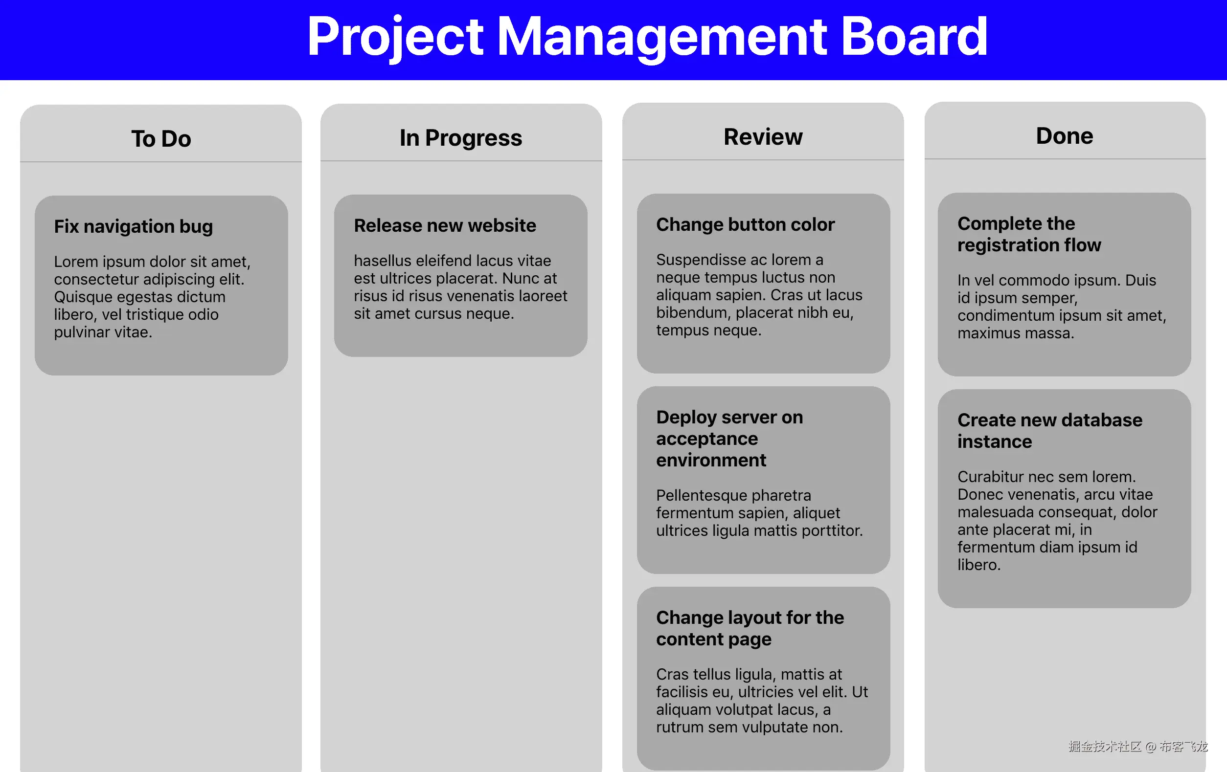 HTML5 拖放 API 使我们能够在项目管理板中拖放元素。为了实现这一点,它使用拖动事件。onDragStart、onDragOver和onDrop将用于此应用程序。这些事件应放置在Lane和Ticket组件上。让我们开始吧: