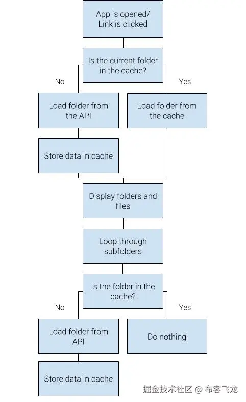 预缓存不仅用户当前所在的文件夹,还包括子文件夹。这将通过循环遍历当前显示的文件夹并检查它们是否已经被缓存来完成。如果没有,我们可以从 API 中获取数据。
