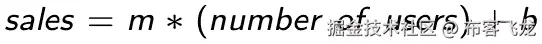因此,我们的训练模型实际上就是这个参数化函数。我们输入一个 用户数量,然后得到预测的 销售,如下所示: