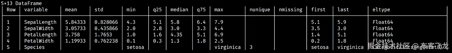 只需学习 Julia 的基本数据结构和一些相关函数,再加上其强大的数据处理工具集,我们就能够实现高效的数据分析工作流程,并从 Iris 花朵数据集中提取有价值的见解。这正是我们使用 Julia 进行高效探索性数据分析所需的一切。