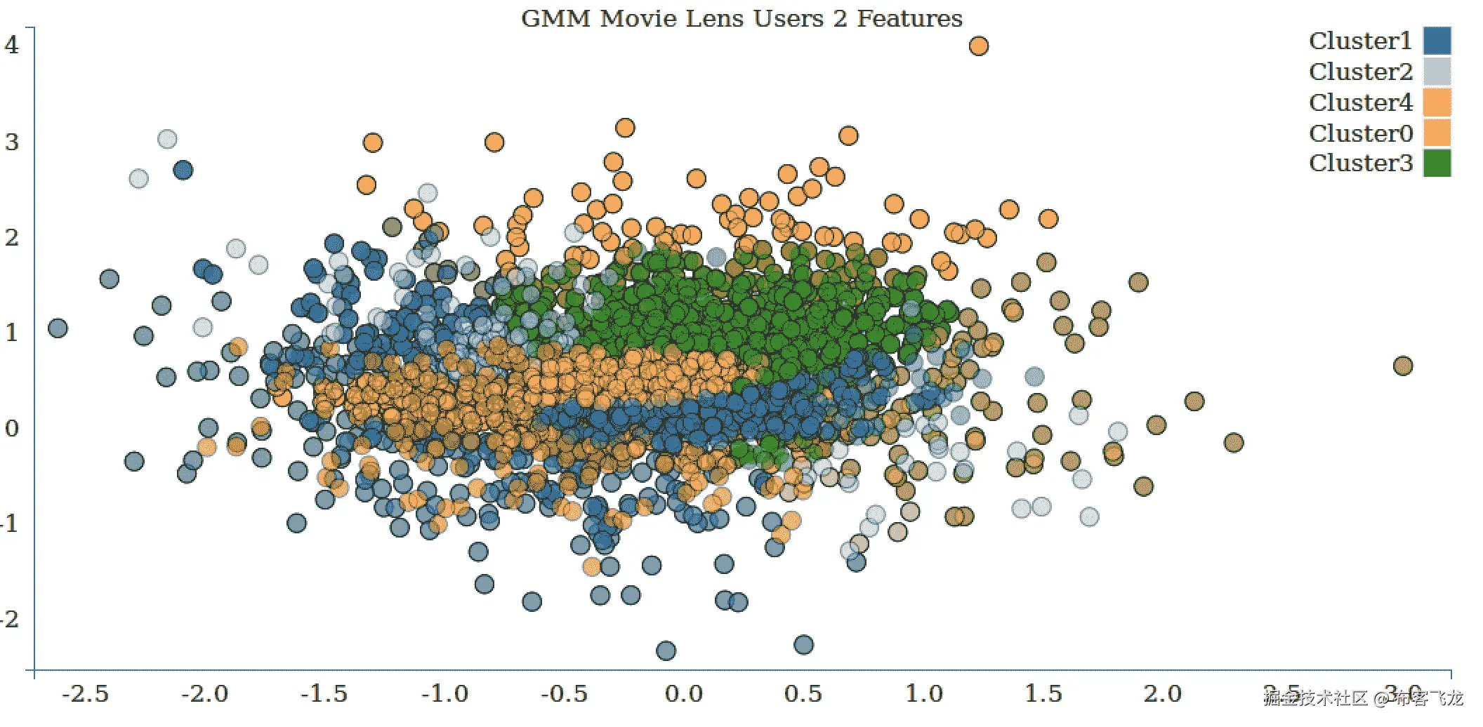 事情开始稳定下来,但总体簇分配与第一次迭代后基本相同。一旦模型收敛,最终的分配可能看起来像这样: