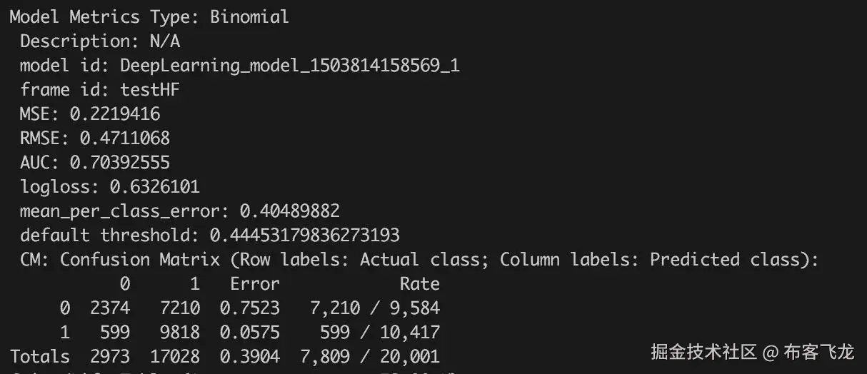 第一列包含基于 F1 阈值决定的预测值。列p0和p1表示各个预测类别的概率。