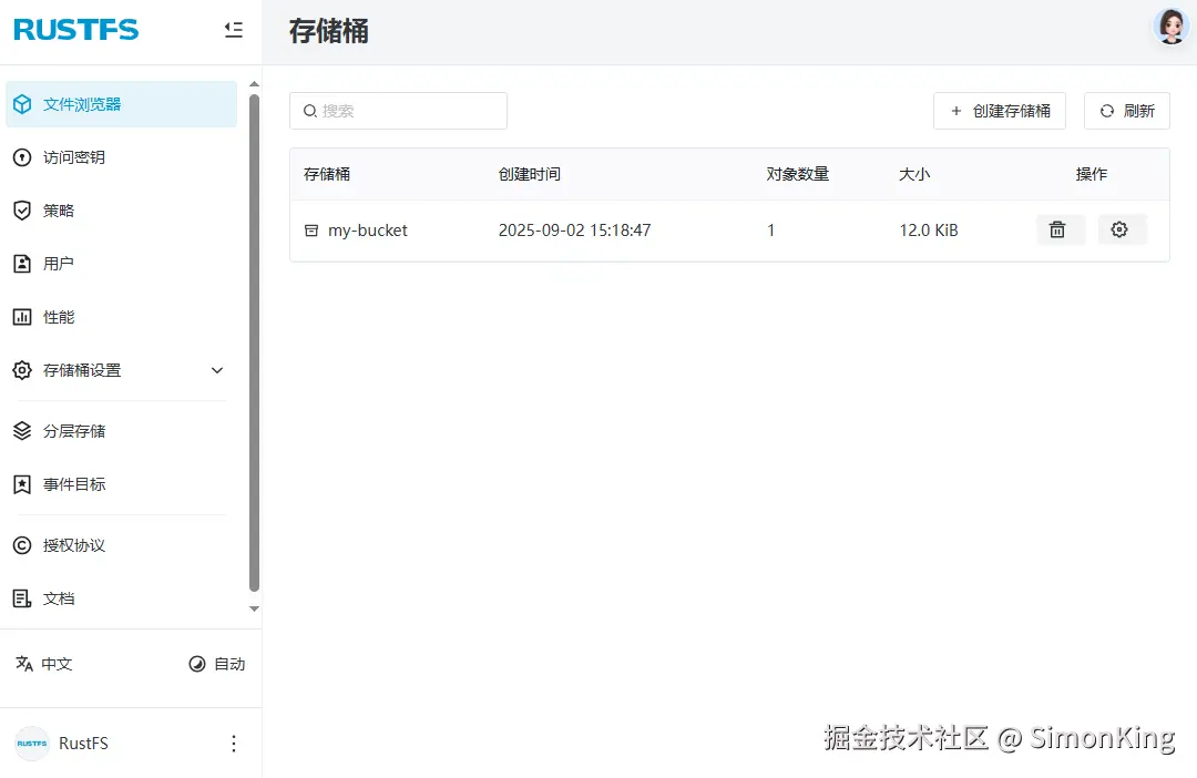 在这里可以功能创建存储的桶,以及管理桶内的文件。