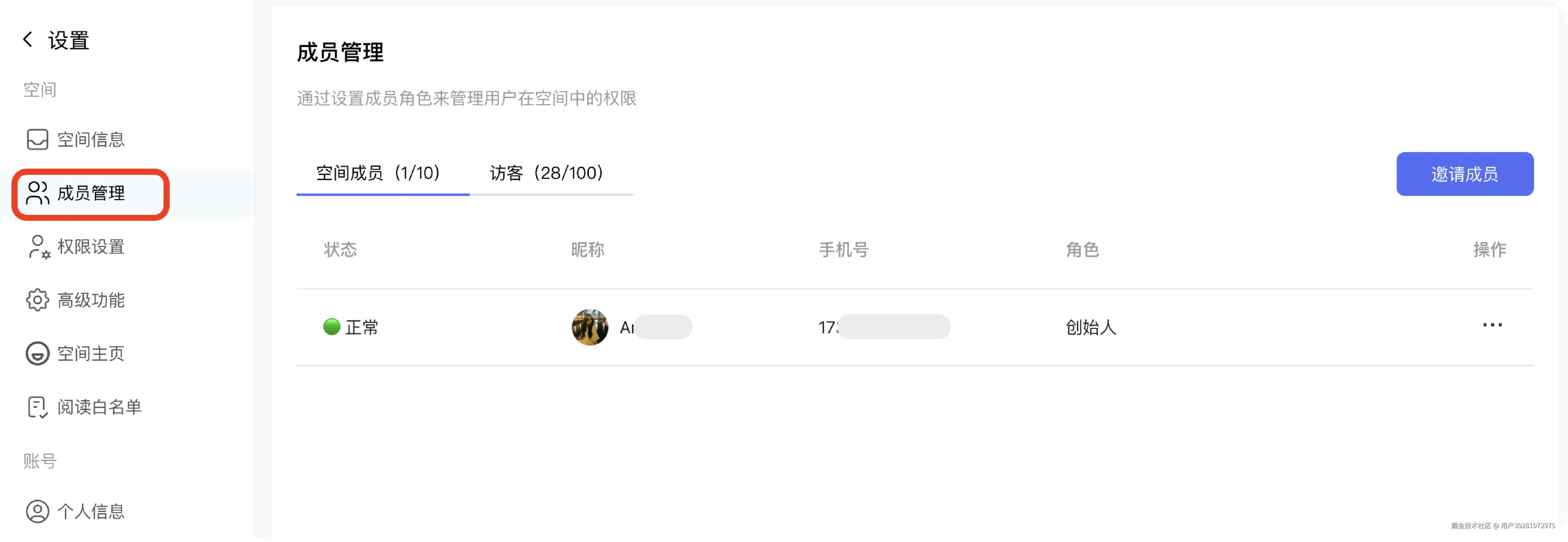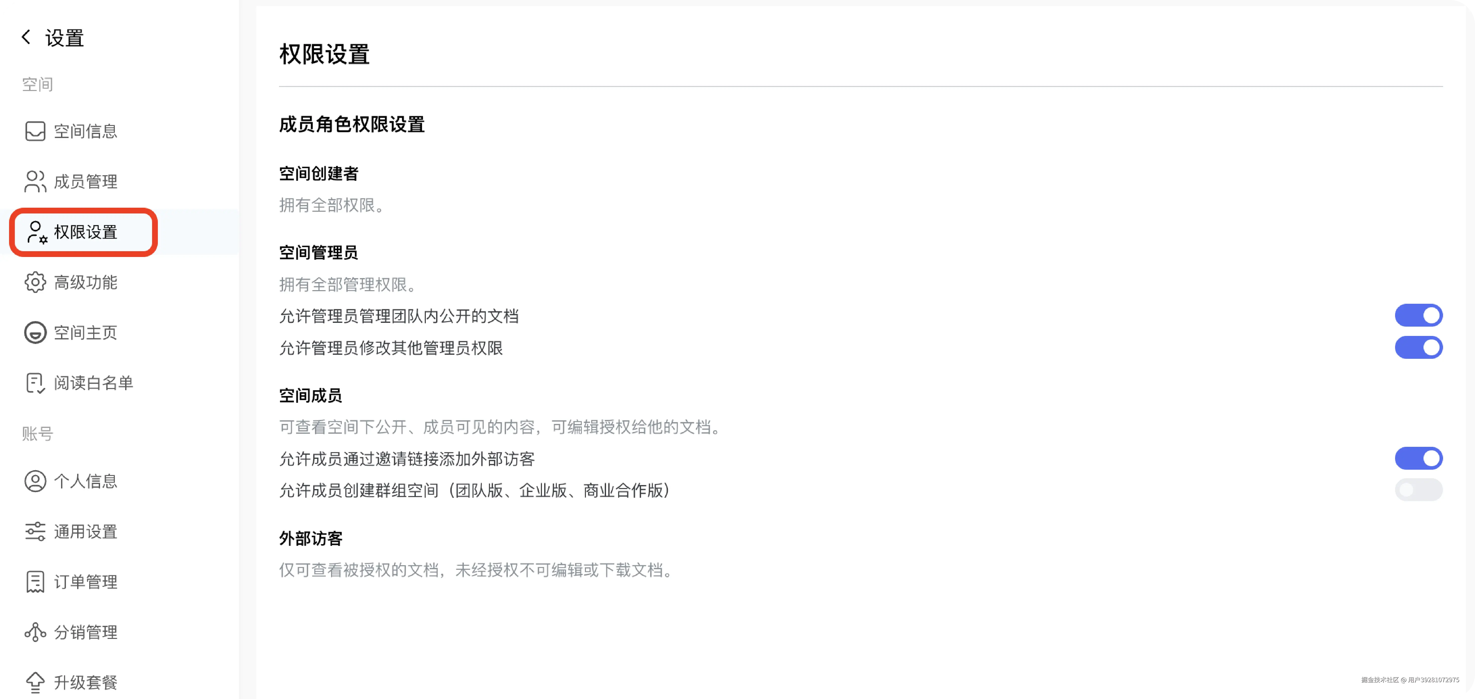 新增空间成员角色权限设置