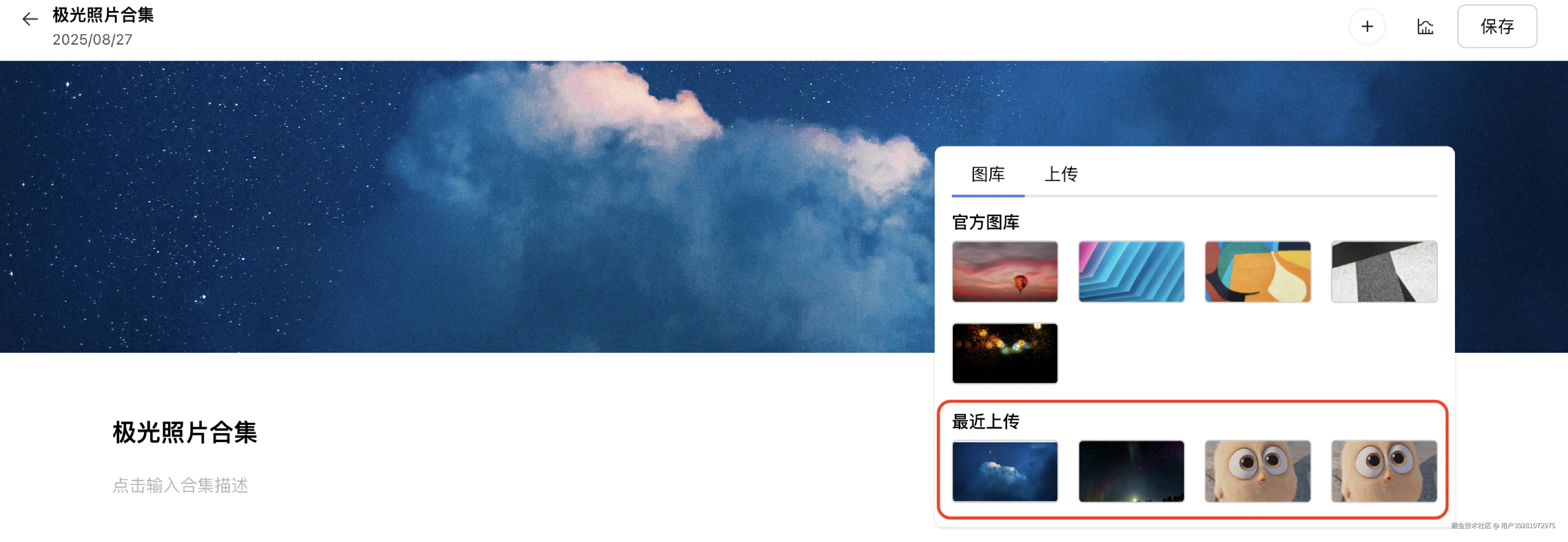 而且在合集中,系统还会自动保存最近上传的素材,方便快速更换。