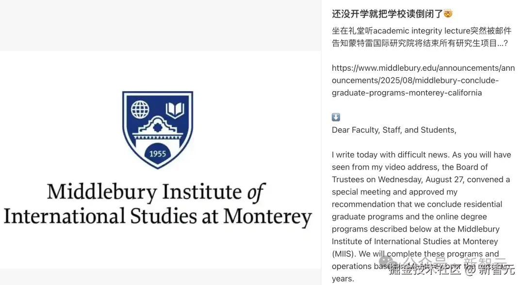 几天前,蒙特雷国际研究学院(MIIS)正式官宣,2027 年 6 月停招研究生。