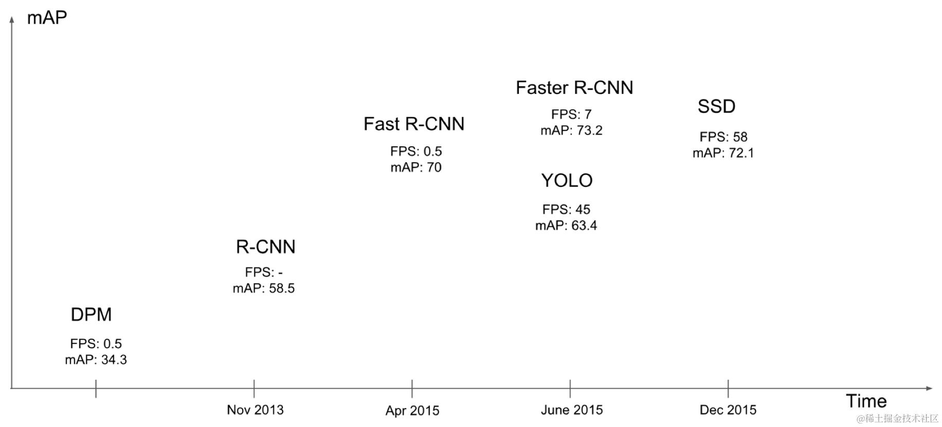 从图中看出SSD算法有较高的准确率和性能,兼顾了速度和精度