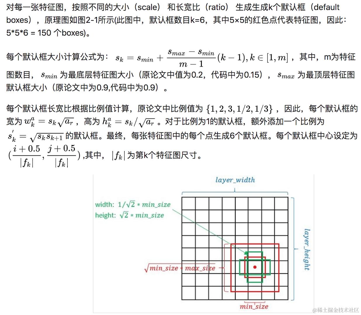 默认框的大小计算参数:s_min:最底层的特征图计算参数,s_max最顶层的特征图计算参数