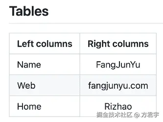 在扩展Markdown中,可以使用竖线分隔创建表格: