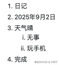 但并非所有Markdown应用都支持此功能,从兼容性角度来看,并不是一个好的选择。如果反斜杠 \ 的下一行没有内容,反斜杠可能会被作为转义字符显示出来。因此,推荐使用两个空格或者