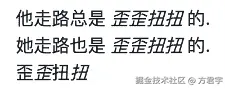 她走路也是 _歪歪扭扭_ 的.