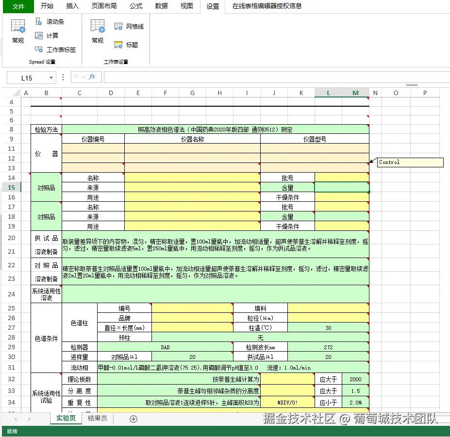 | 实验记录表 表样灵活自由,没有统一的单元格合并规律; 公式计算,跨工作表依赖计算; 检测表中可能会包含图表展示; 包含大量批注,对单元格内容进行解释说明; 原始记录单基本都在Excel中设计,不仅需要兼容历史检测单,也需要保留历史设计方式。 | |