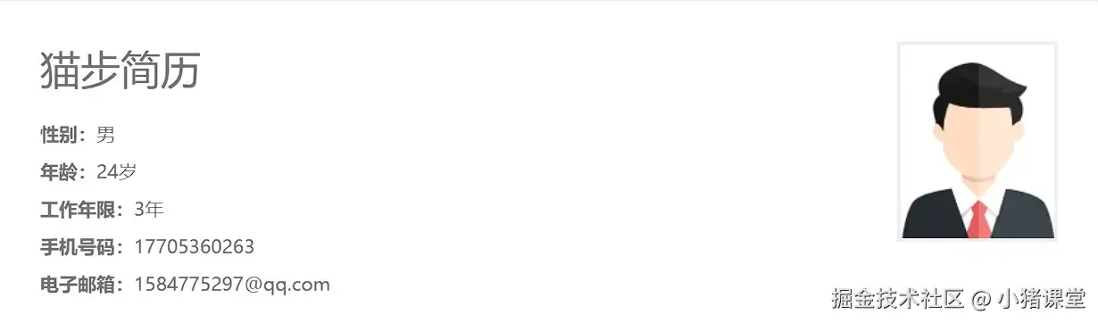 这个模块在简历里面很重要,因为这个模块里面会有很多个人的基本情况信息,也是HR第一眼关注的地方,下面是一个比较标准的基本信息模块。