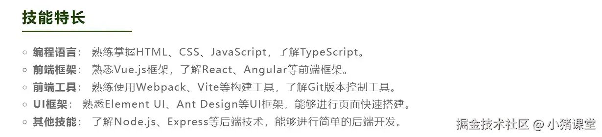 下面是一个技能特长模块示例: