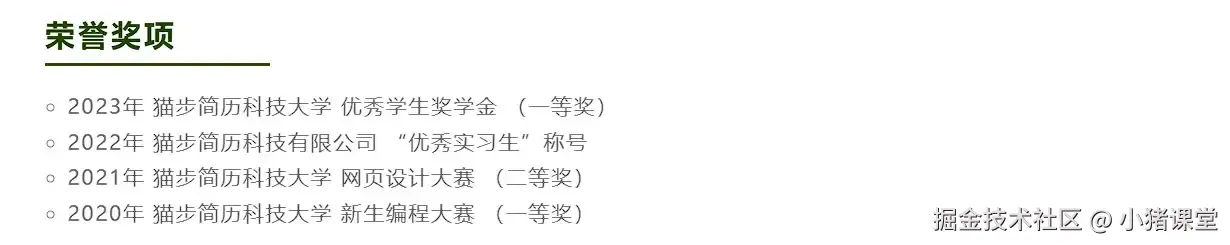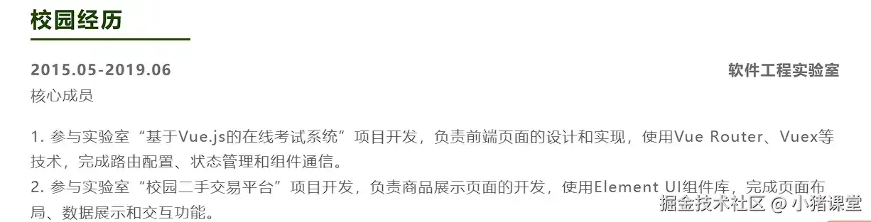 下面是一个校园经历模块示例:
