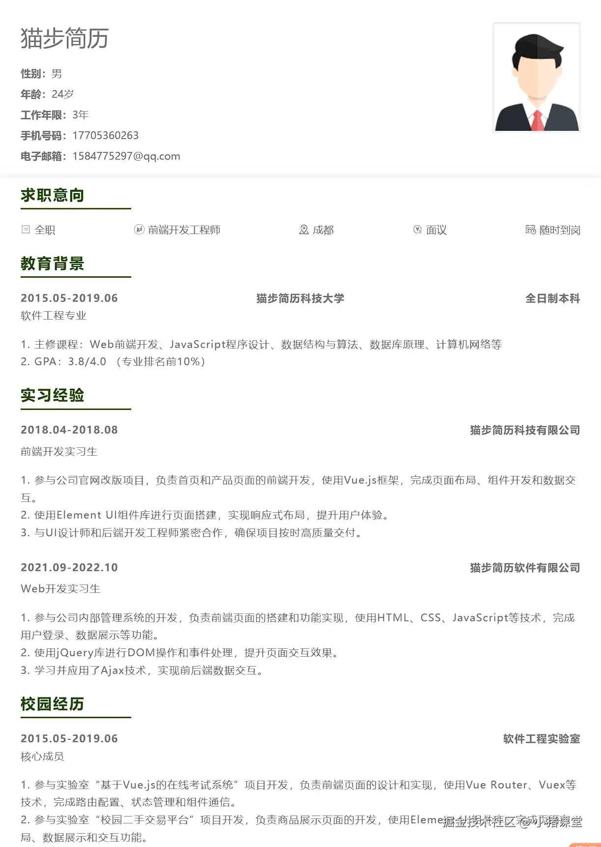 我是【猫步简历】的开源作者,也是一名半独立开发者,同时也是职场中的一员。