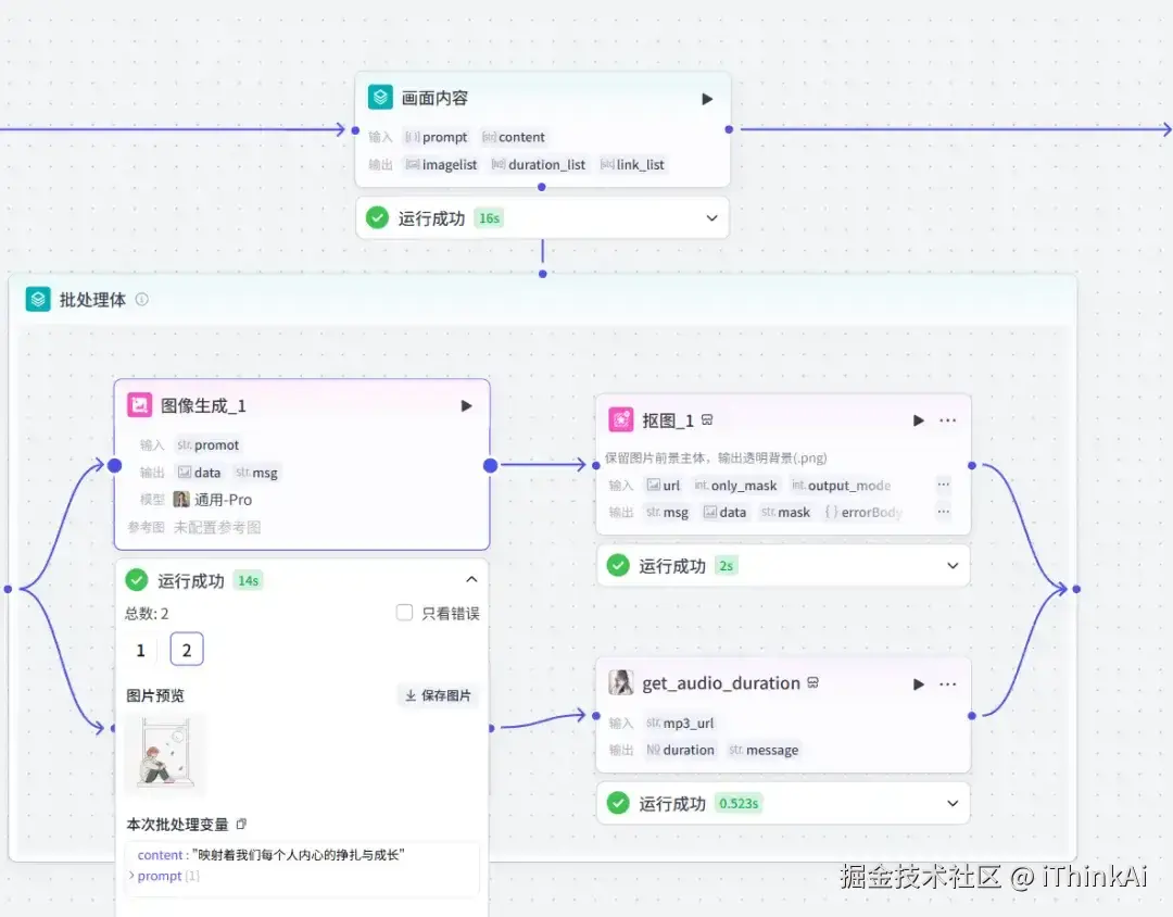 调用MJ绘画接口生成画面,通过配音插件生成情感化朗读