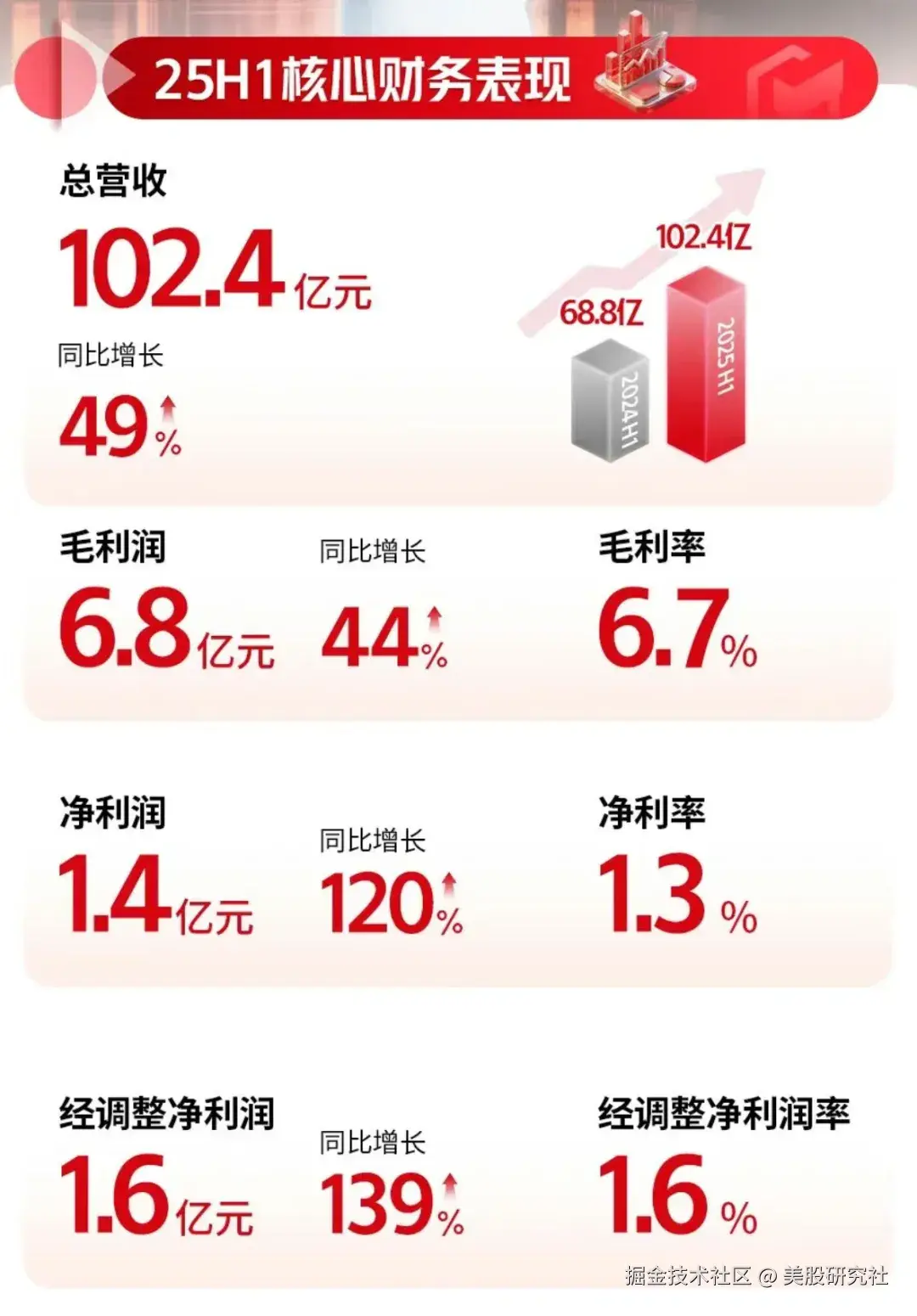 日前发布的中期业绩显示,顺丰同城营收同比增长48.8%至102.36亿元,半年度收入首次突破百亿;净利润增长120.4%至1.37亿元,创下历史新高;期内经调整净利润约1.6亿元,同比增长139.0%。