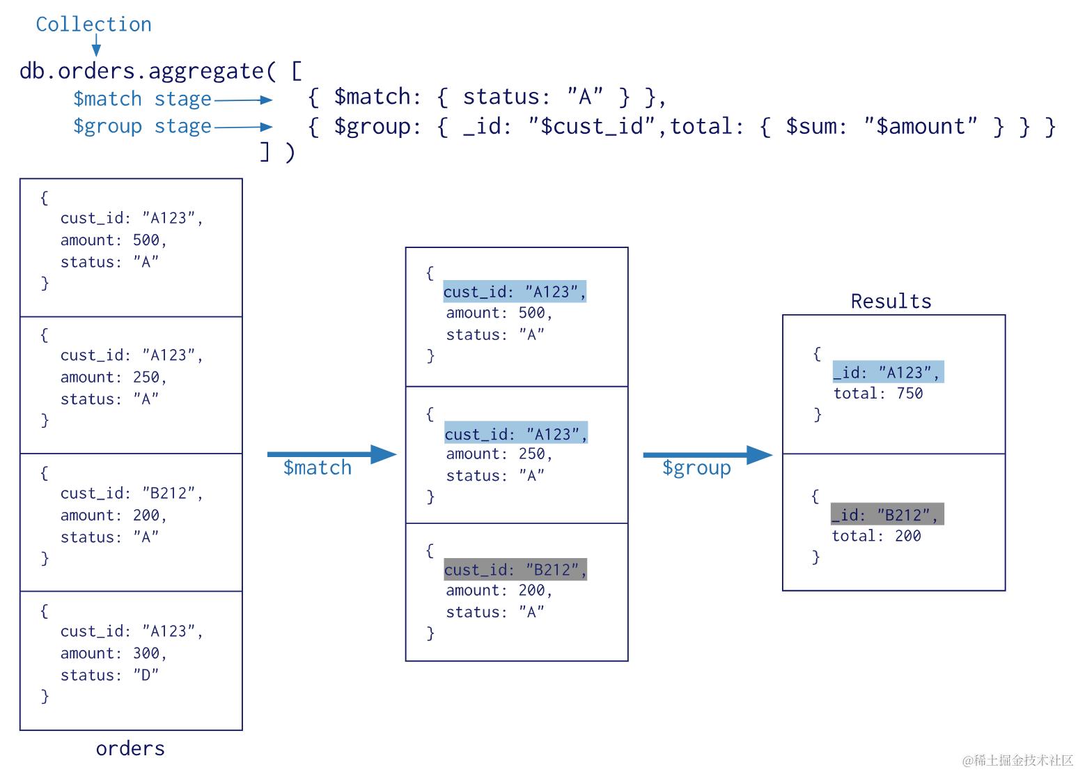 $match用于进行数据的过滤,是在能够在聚合操作中使用的命令,和find区别在于$match 操作可以把结果交给下一个管道处理,而find不行
