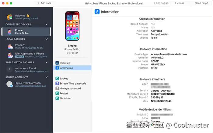 Reincubate iPhone Backup Extractor 是一款功能强大的iPhone 备份提取工具,支持 iTunes 和 iCloud 备份。它不仅可以分析常见的数据类型,还可以从 WhatsApp、Viber 和微信聊天记录等第三方应用中提取数据。对于加密的备份文件,它可以解锁并提取内容,这使得它在众多工具中脱颖而出,成为更专业的选择。