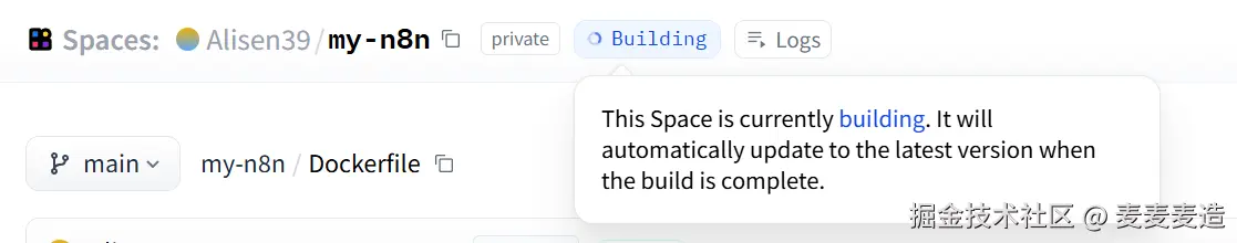 当你提交 Dockerfile 后,Hugging Face Spaces 会自动开始构建和部署你的应用。