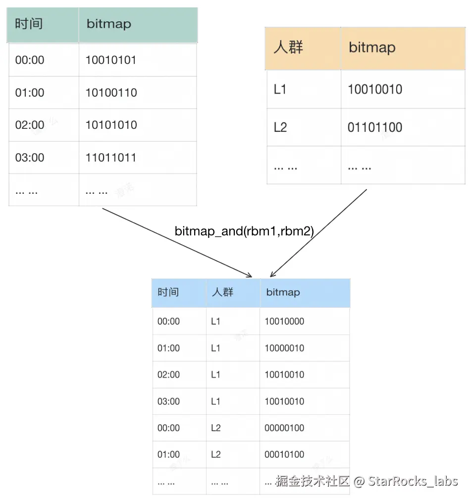 bitmap_or 是对两个 Bitmap 做并集,bitmap_union 是聚合函数,对同一列的多个 Bitmap 做并集计算。