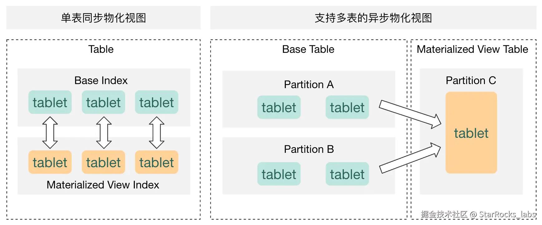 对于带分区的物化视图,主要通过与上游基表的分区依赖和数据变化来刷新对应视图分区,可以通过参数控制刷新行为,对比物化视图与基表对应分区的可见版本,来判定需要刷新的分区,以防止过多分区刷新导致的资源浪费;