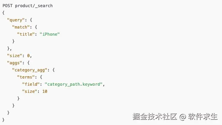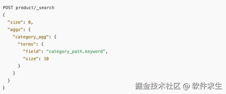 我们用的是 Terms Aggregation。比如,统计一级类目的商品数,可以这样写: