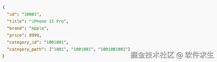 所以,我们需要在 Elasticsearch 里把商品的类目信息存进去。一般存法是: