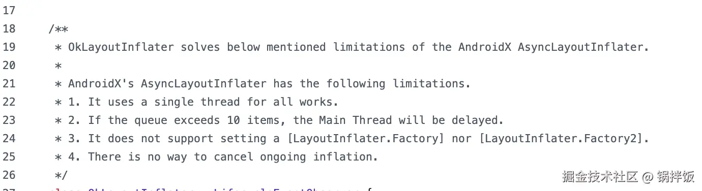 其中,注释中直接说明了他解决的AsyncLayoutInflater的一些缺陷: