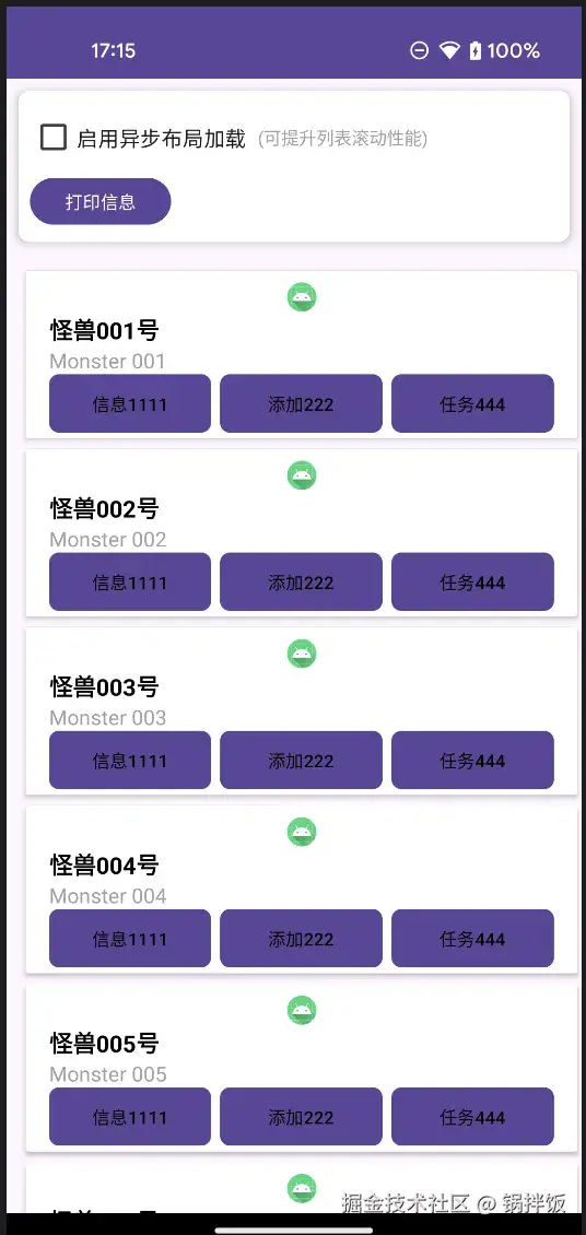 在实际应用场景中,我们采用的是预加载+异步加载的方式,提升RecyclerView的绘制效率。对于RecyclerView需要在短时间内创建大量View的场景,OkLayoutInflater的提升非常有效。