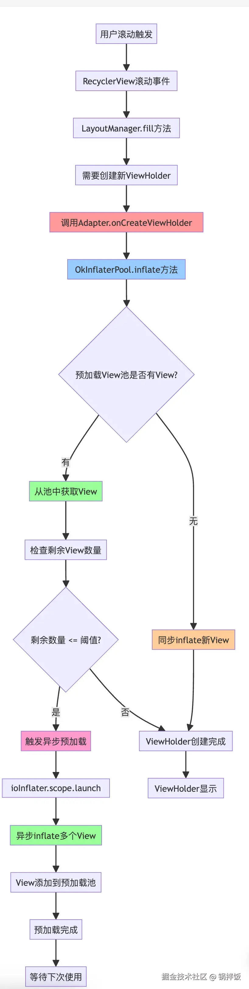 - 主线程阻塞:inflate过程在主线程执行,涉及IO操作和View树构建