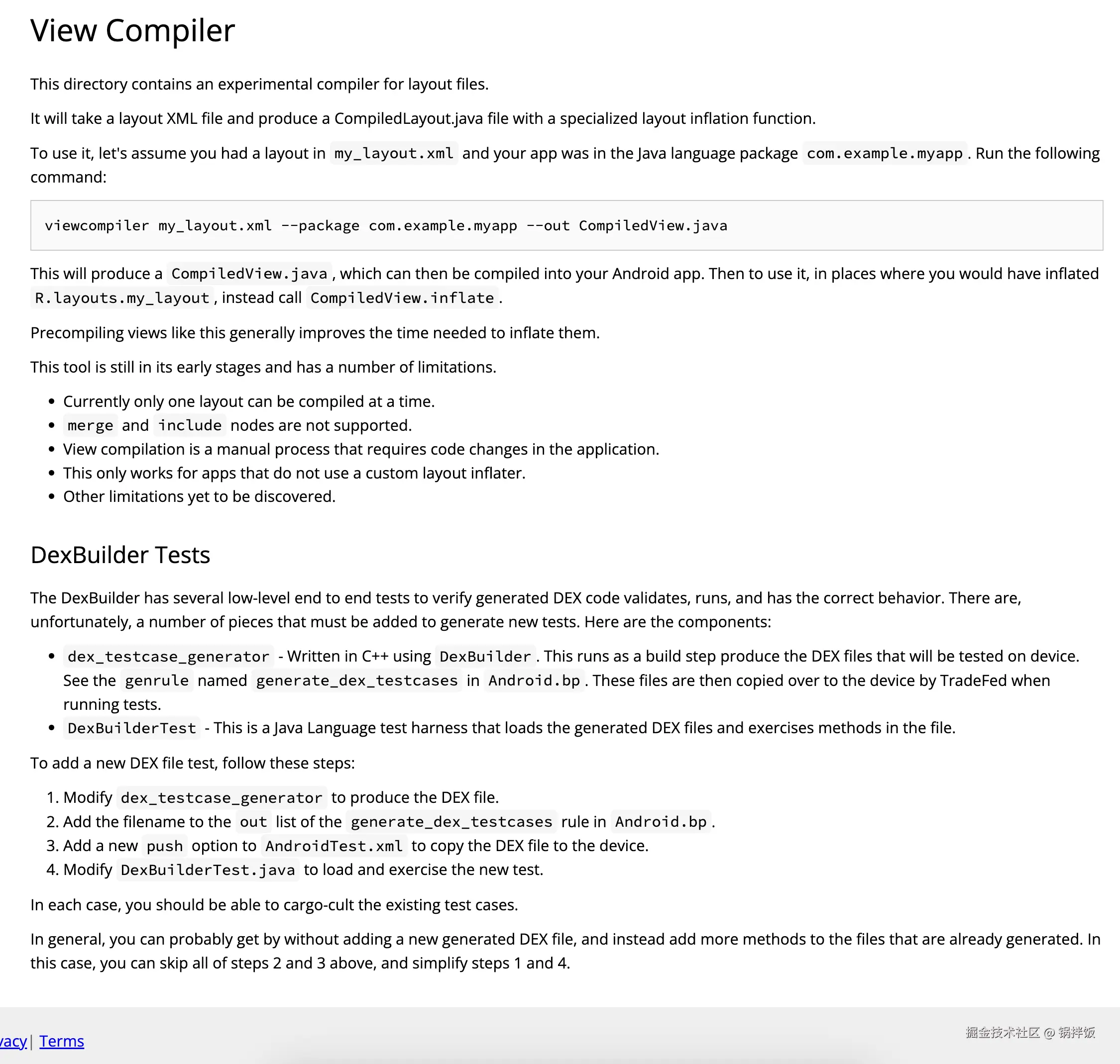 Google 在Android10 加入了一个实验性功能 ViewCompiler,可以手动地将 xml 布局转化为 java 文件或者 dex 文件,但它并不支持 merge 和 include 标签。