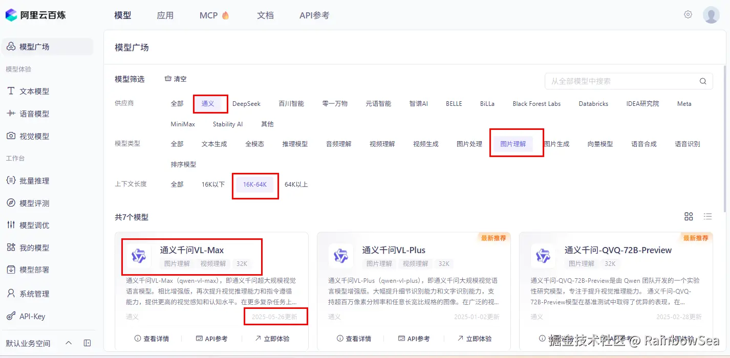 首先:准备工作:切换阿里百炼大模型选择选择模型qwen-vl-max,能支持图像的qwen-vl-max。
