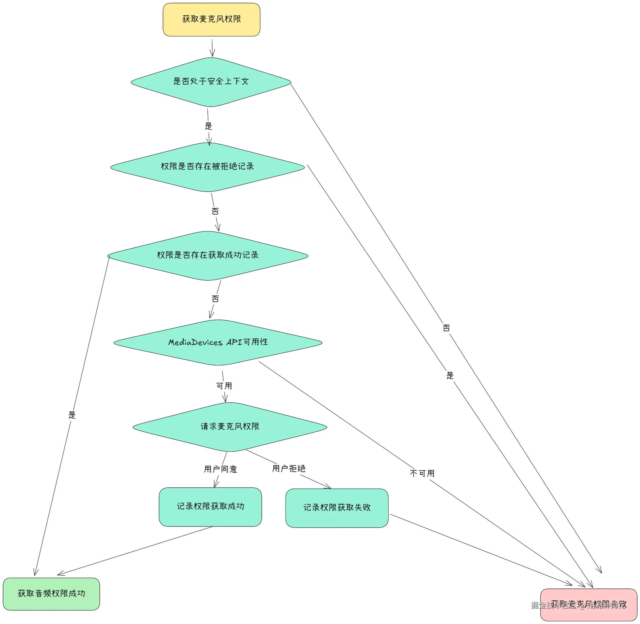 - 浏览器会永久缓存用户的麦克风权限决定;若用户首次弹框即拒绝,后续将默认拒绝。