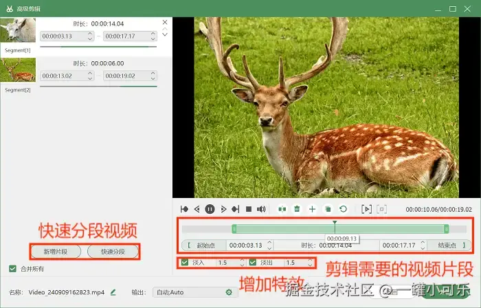 步骤3:录制结束后,可以在预览页面的右下角选择 “高级剪辑” 工具对视频进行编辑操作。比如快速分段视频、增加视频特效等。按需操作就可以了。