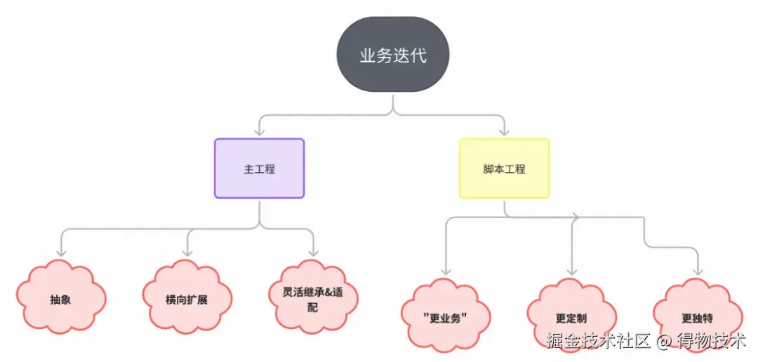 在业务迭代的代码编写中,通常分为两种类型:主工程底座和脚本工程。